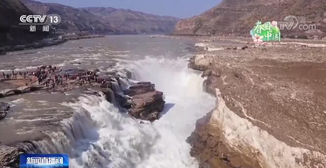 “千里黄河一壶收”随着气温回暖,每年三月中下旬到四月上旬,黄河冰凌消融,恰逢两岸桃花盛开形成壮美的桃花汛。尽管冰凌尚未完全融化,但滚滚黄河水在十里龙槽的冰凌中冲出了一条通道,冰水交融,奔向前方。从空中俯瞰,山桃花开正艳,湍急的河水奔腾而下,跌入深潭,激起阵阵白雾。在阳光的照射下,飞瀑与彩虹相映成趣,呈现霓虹戏水的绝妙景观,吸引了众多游客前来观赏。