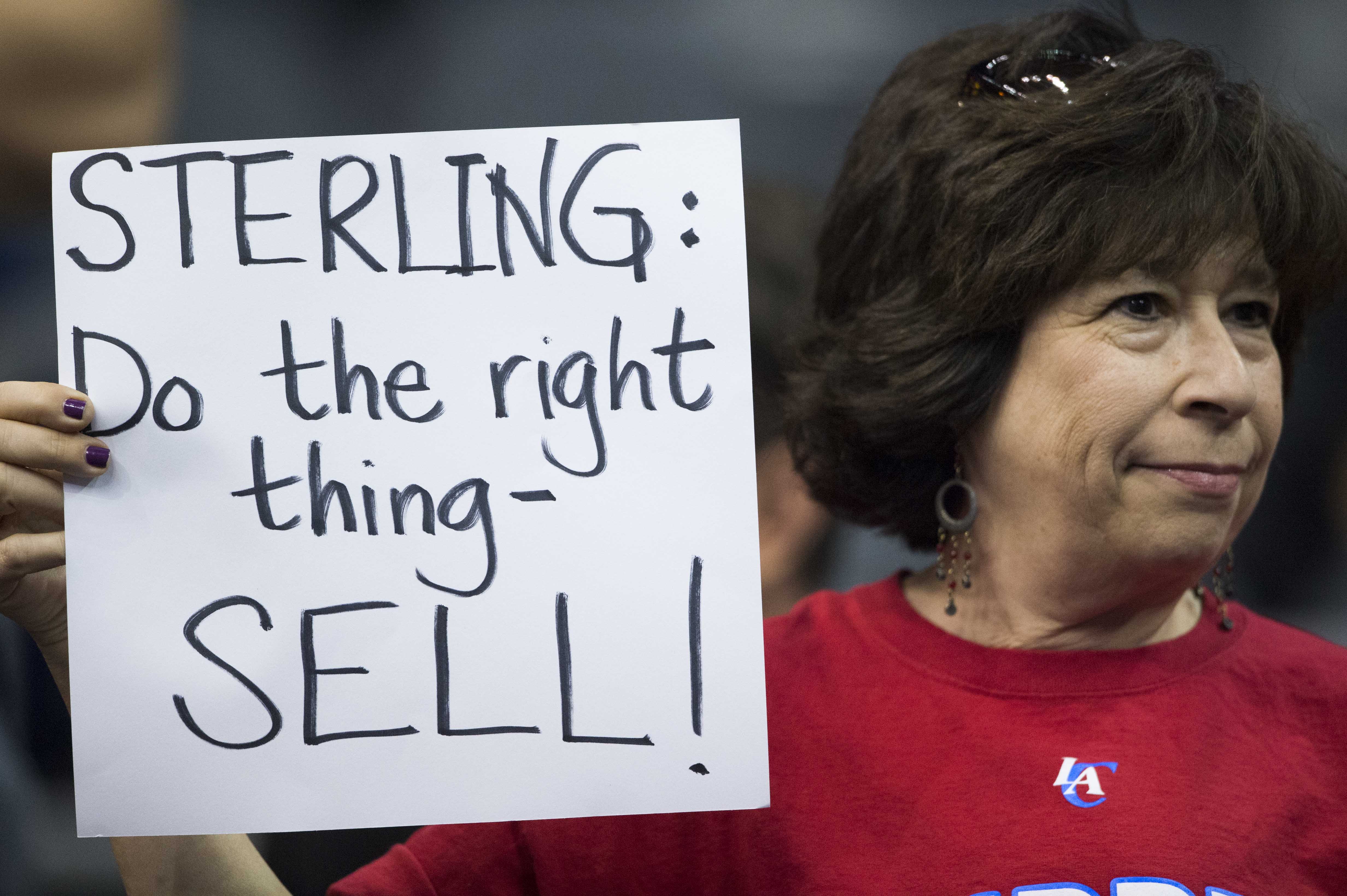 快船队球迷打出要求球队老板斯特林卖掉球队的标语