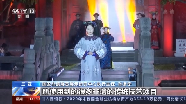 国家非遗展览展示研究中心执行主任 孙冬宁:锦绣中华——2021中国非遗服饰秀系列活动,走出北京,来到中国大陆最南端的千年古城崖州,本身就是一次南北文化空间的碰撞和交融。黎锦的纺、染、织、绣,苗族的织绣印染技艺,还有宋锦和我们在非遗主题影视剧之中所使用到的很多非遗传统技艺项目都作了非常精彩的展示。