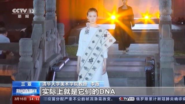 清华大学美术学院教授 李薇:黎锦实际是一个非遗项目,也是中国传统手工技艺最具有代表的,而且它是反映了海南黎族服饰文化和风情,要把它的图腾符号表达出来,因为我们知道图腾的符号实际上就是它们的“DNA”。另外把织锦的一些技艺表达出来,把织染绣的这些传统手工技艺表达出来。