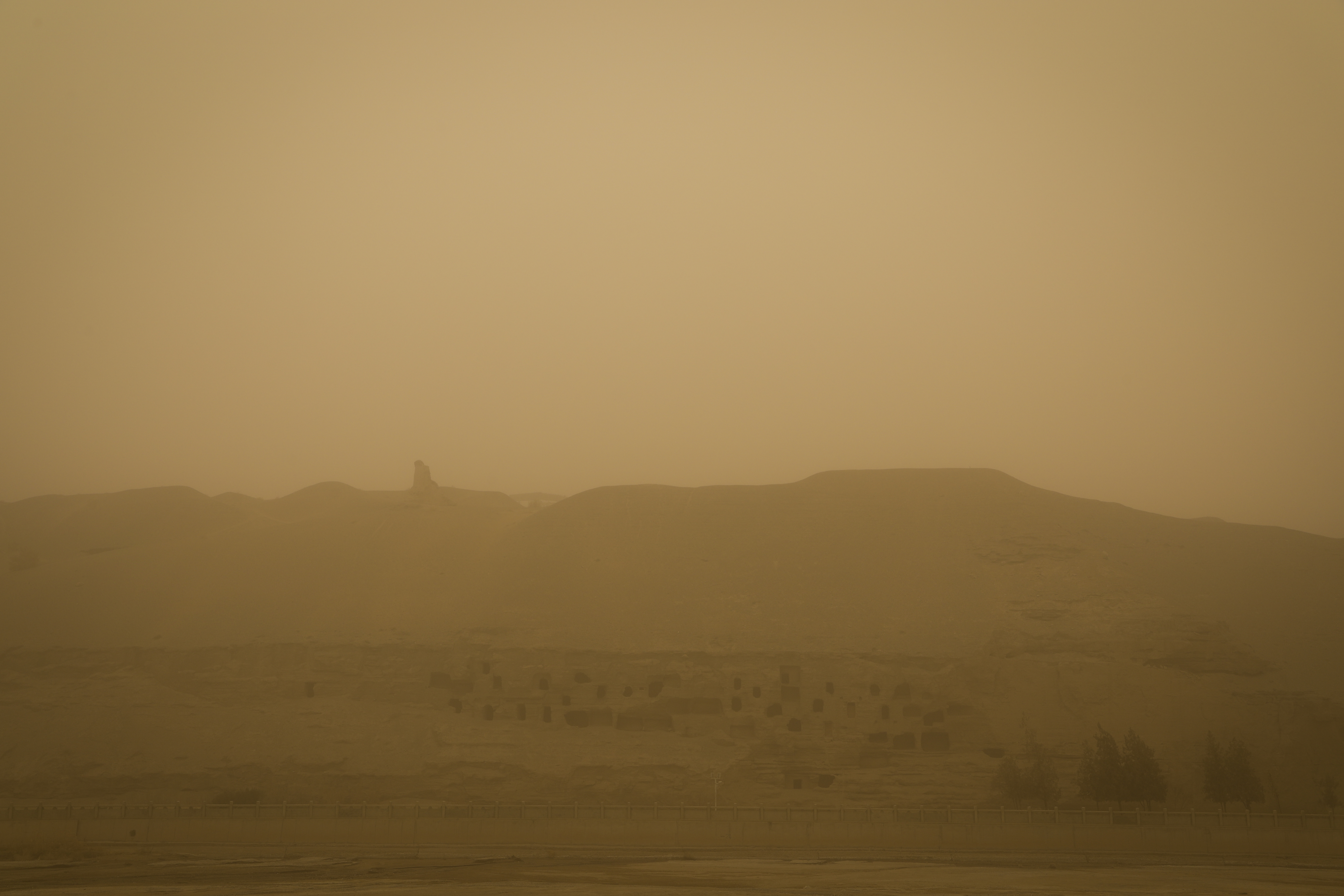 15日,黄沙弥漫的莫高窟北区。王嘉奇 摄