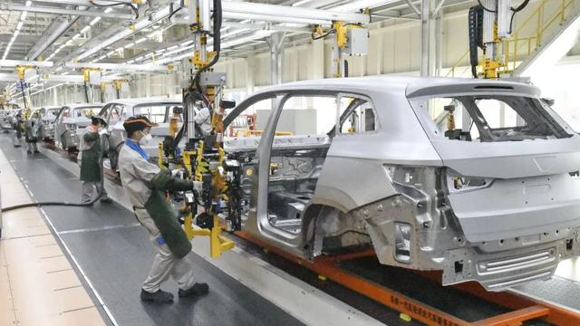 位于成都市龙泉驿区的一汽-大众成都分公司焊装车间里,工作人员正在焊装车身。李向雨摄(中经视觉)
