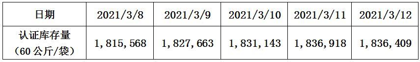 表1 ICE(纽约)“C”型咖啡认证库存量