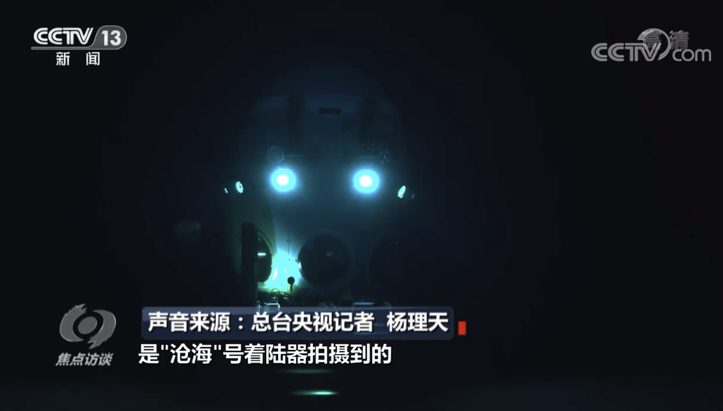 我们可以看到“奋斗者”号在深海执行任务时工作的全过程,那么,这些画面是谁来拍摄的呢?它就是“奋斗者”号的搭档——“沧海”号。这是中央广播电视总台牵头,联合多家机构研制的万米级深海视频着陆器。“沧海”号可以进行全海深4K超高清视频拍摄采集、传输处理;不仅可以搭载全海深高清相机将万米洋底的实时画面直播回传,而且还能记录深海中“奋斗者”号的一举一动。为了保障这一次直播的顺利进行,中央广播电视总台还派出了专业的技术团队做技术支持。