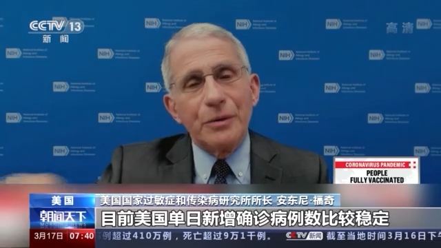 美国国家过敏症和传染病研究所所长 安东尼·福奇:目前美国单日新增确诊病例数比较稳定,维持在每天4.5万、5万到6万例之间,这一数字和以前每天数十万例相比已经好多了,但仍处于一个无法接受的高位。我们必须非常小心,现在还不是宣布胜利的时候,还不能放松那些有效防控的公共卫生措施。