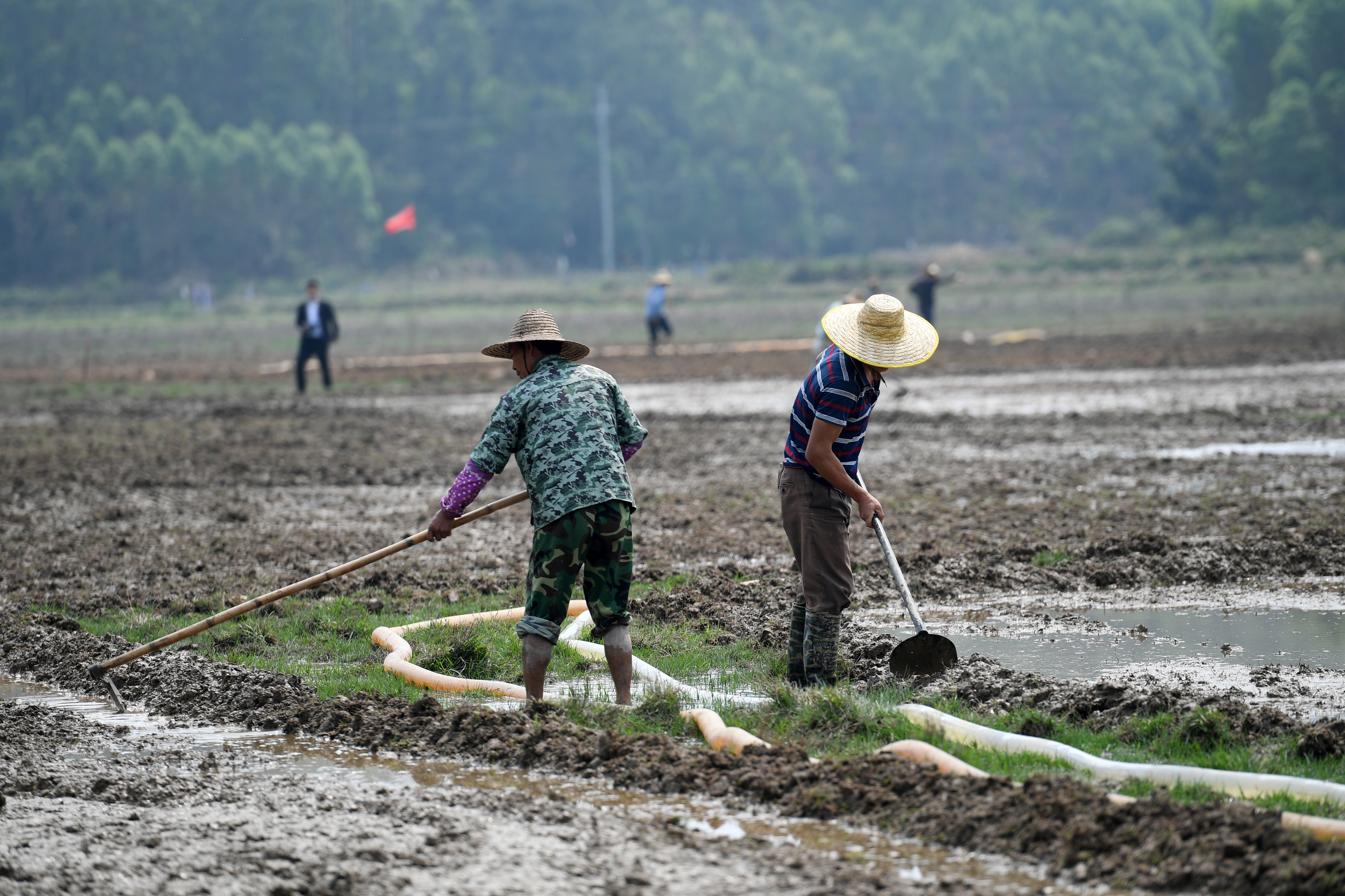 在广西钦州市钦南区东场镇上寮村,村民在翻整土地。新华社记者陆波岸摄