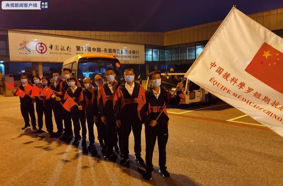 此前一天的3月16日,中国援科摩罗短期抗疫医疗队在广西集结完毕,并于当天下午在南宁举行了出征仪式。队员们庄严宣誓,将与受援国人民同舟共济,抗击新冠肺炎疫情。