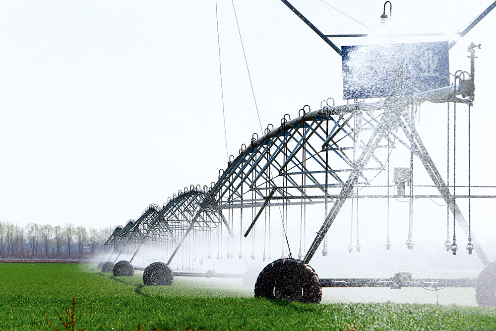 2月23日,河南省鹤壁市浚县一片高标准农田里,自走式喷灌机在为小麦浇水 许雅楠摄/本刊