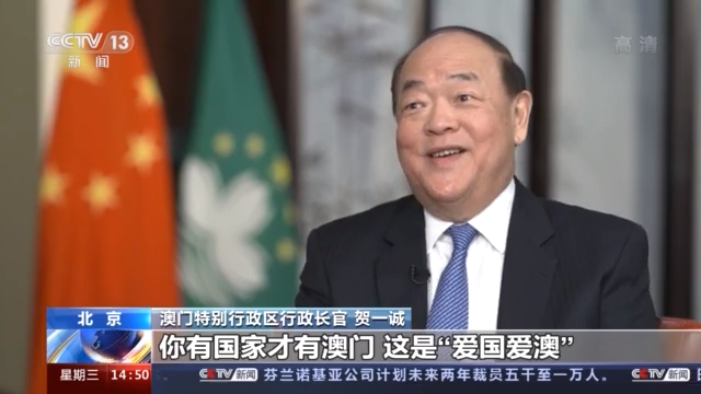 澳门特别行政区行政长官 贺一诚:澳门从回归后我们的教育,还是“爱国爱澳”的教育为主体,如果没有一个好的教育基础,特别是在港澳地区,它受外来的影响比较大,从小的“爱国爱澳”教育,奠定了一个“爱国爱澳”的基础。我们从2009年,澳门就已经立了有关的国家安全法,按照基本法第二十三条,我们就完成了我们的法律,要把保护国家安全放在首位,你有国家才有澳门,这是“爱国爱澳”。习主席在(澳门回归)20周年的讲话里面讲到,我们澳门是一个澳门特色的“一国两制”的典范,这一点我们要保持好,不能变样,不能走歪路,做好这方面“一国两制”的事业。 (总台央视记者 朱若梦 戴峰 肖中仁 王冠忠)