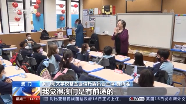 澳门葡文学校基金会信托委员会主席 施绮莲:现在20多年过去,所以你问有什么转变,澳门真的转变很大,但是我的生活方式、生活模式都是一样的,我做我喜欢做的事,我去我喜欢去的地方。我觉得澳门是有前途的,得到中央(政府)很大的支持,这个很关键,我们能进入到大湾区,大湾区有个很大的商机,很大的市场,澳门是一片光明的,大家安居乐业,非常幸福,我觉得澳门是个福地。