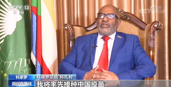 央视网消息:总台记者日前从中国驻科摩罗大使馆获悉,中国向科摩罗捐赠的新冠疫苗将于当地时间17日运抵。疫苗运抵之前,科摩罗总统阿扎利接受了总台记者采访,他表示将率先接种中国疫苗。
