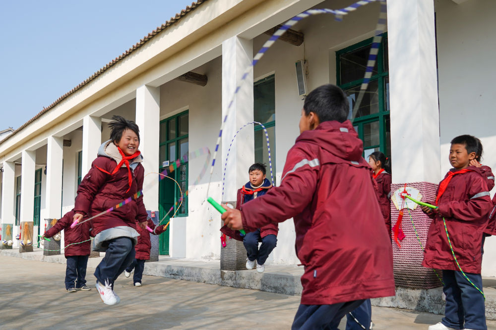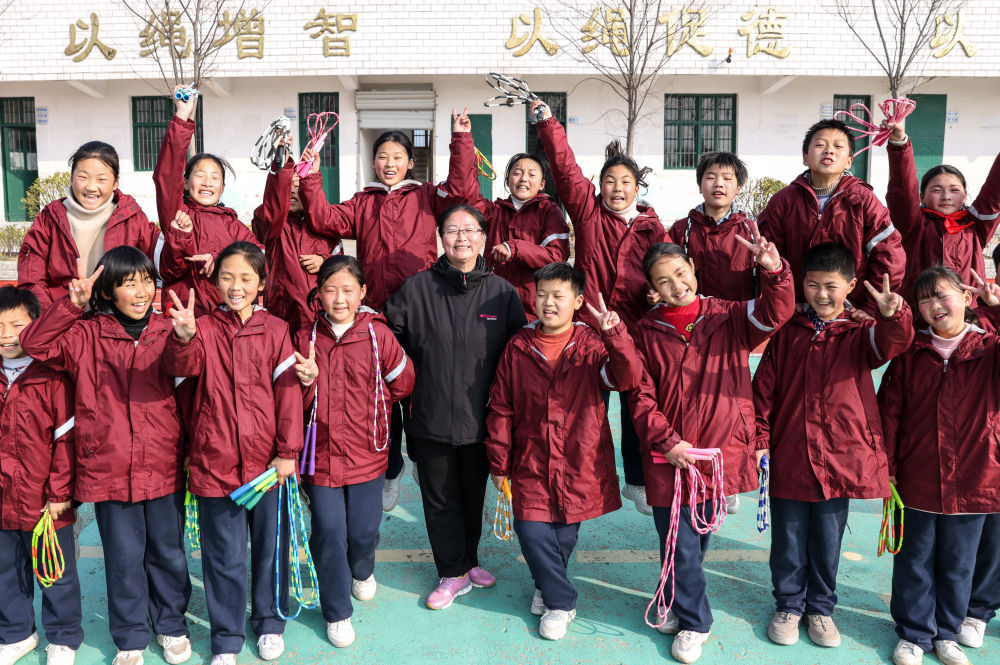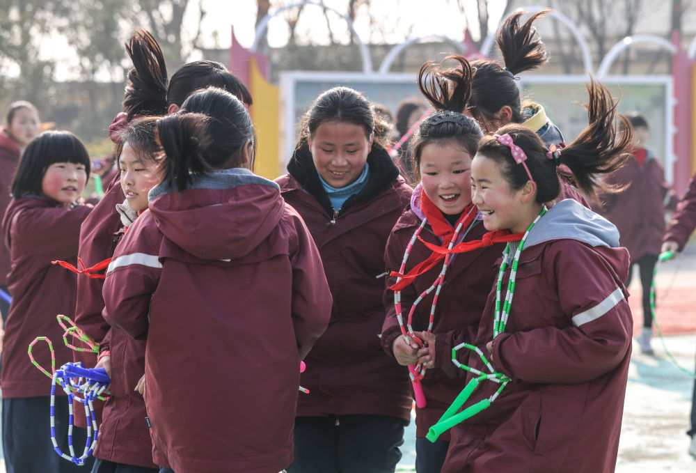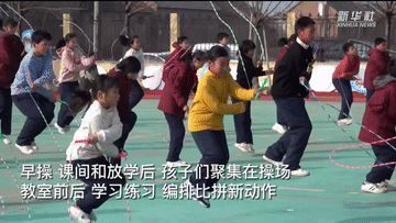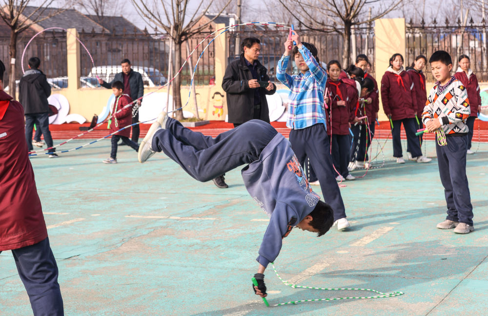 江苏省睢宁县骑路小学 学生们人手一根跳绳 能跳出300多种花样