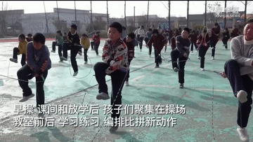 早操、课间或是放学后 孩子们就聚集在操场 练习、编排、比拼新动作