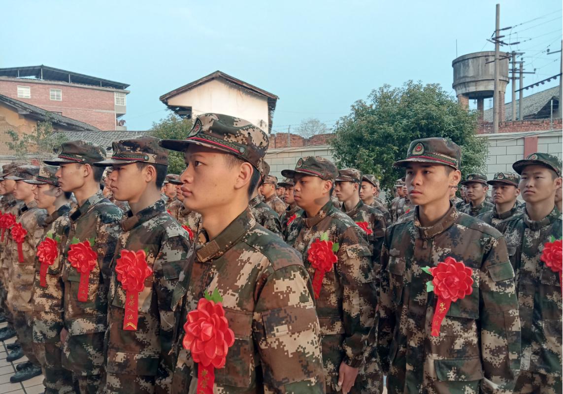 欢送大会上,新兵们举起右臂庄严宣誓:“永远忠于党,永远忠于祖国,永远忠于人民,为军旗添彩,为祖国增辉……”