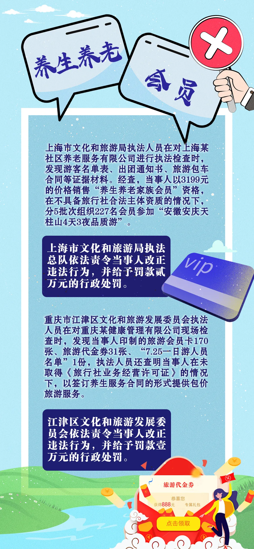 文化和旅游部要求,各地文化和旅游行政部门、文化市场综合执法机构重点检查保险、保健品等各类市场营销活动中的包价旅游产品,特别是以中老年为主要目标群体的包价旅游产品。加强在线旅游市场执法,重点查处未经许可通过互联网推广和公众号营销等方式开展旅行社业务的违法违规经营行为。加强对旅游团队、地接社的执法检查,对旅游集散地、主要景区中的旅游团队进行重点执法。