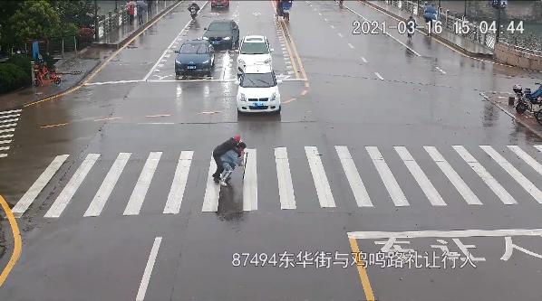 3月16日下午3时许,浙江衢州市龙游县东华街与鸡鸣路路段监控记录下斑马线上的暖心一幕。