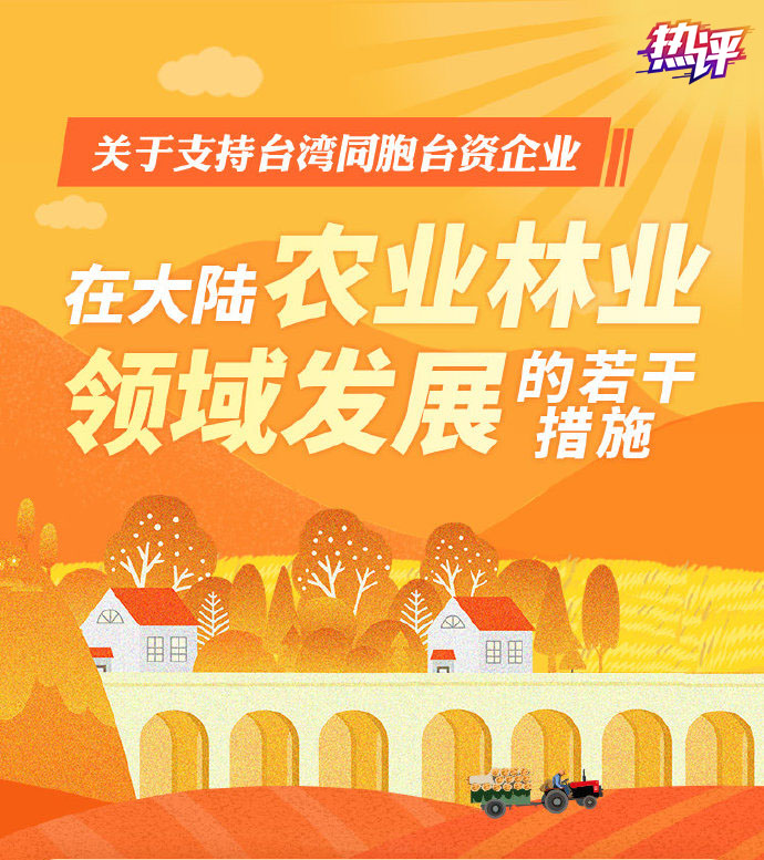17日,国务院台湾事务办公室、农业农村部、国家林草局等十一个部门联合出台《关于支持台湾同胞台资企业在大陆农业林业领域发展的若干措施》(简称“农林22条措施”)。