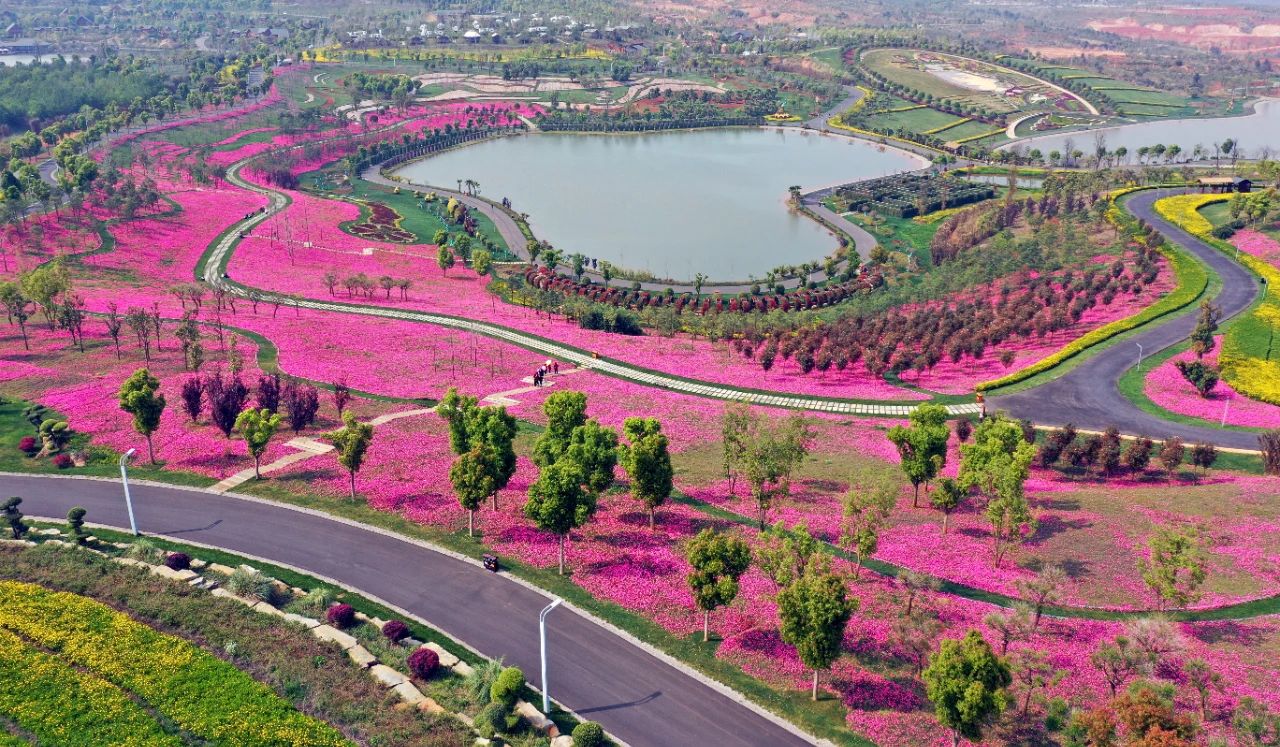 绿树成荫,花海绚烂,自然山水景观和多层次地形地貌融合……2020年8月,红河州弥勒市太平湖森林小镇的山地石漠化公园正式开放,旋即成为“网红打卡地”。