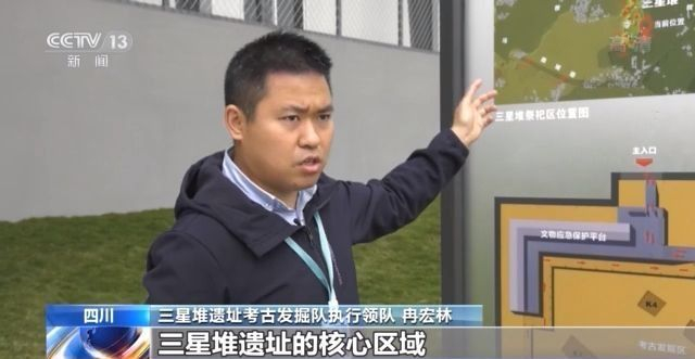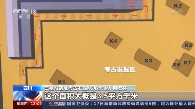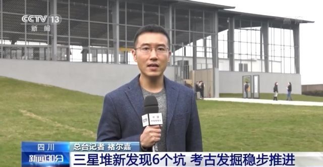 总台记者 褚尔嘉:我现在就是在三星堆遗址,在我身后的祭祀区考古大棚里,考古工作者正在对三星堆遗址新发现的6个坑进行紧张的考古发掘作业。