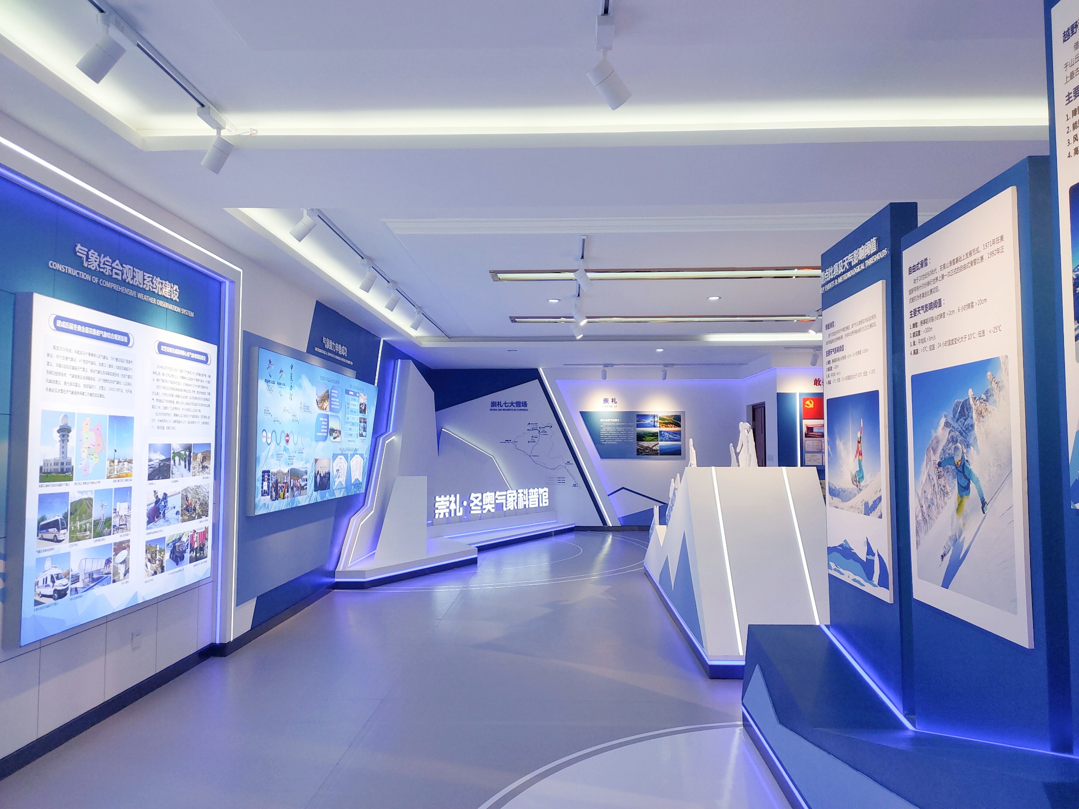 在崇礼冬奥气象科普馆里,通过内容丰富、形式多样的布展方式和新颖独特的造型设计,将沉浸感、科技感和知识性有机融合,全方位、多角度展示气象现代化建设成果、冬奥比赛气象条件等科普内容。下阶段,科普馆还将增加投影、大屏、VR互动体验等板块,让参观者通过互动充分领略冰雪运动的魅力。