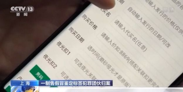 上海市公安局虹口分局经侦支队情报技术室主任 偰宜君:通过扫描鉴定证书里面的二维码,就会跳出需要填写产品名称、发行价格、发行(日期)的页面,售假人在之前就会先把这些信息填好。买到假冒商品和假“四件套”包装商品的消费者再扫码时,就会跳出之前填好的东西。