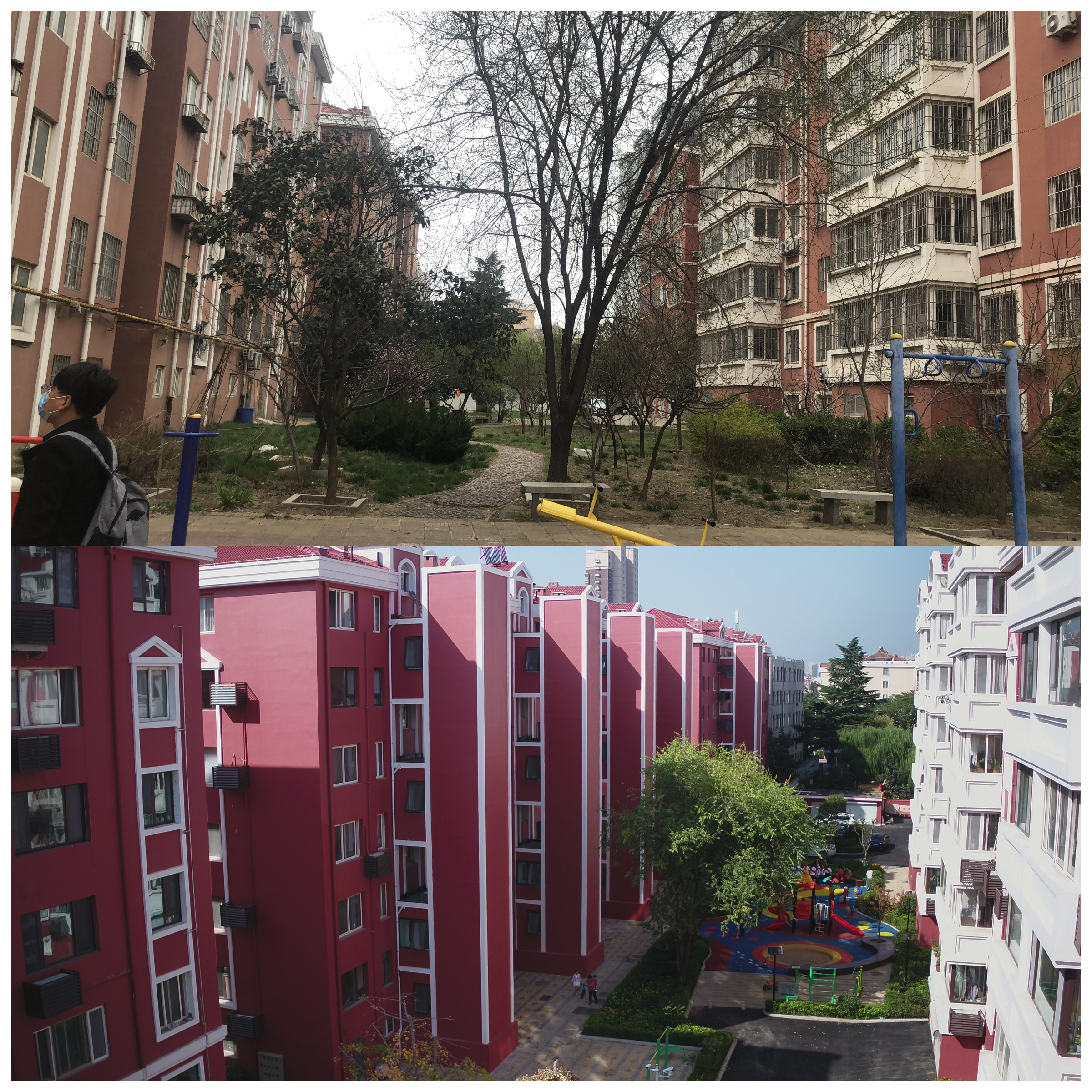 胶州市东关小区B区改造前后对比(拼版照片)。胶州市住建局供图