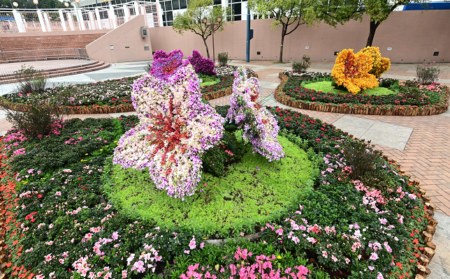 位于九龙公园的杜鹃花花圃,除展出多个特别品种的杜鹃花外,更有7个超过1.5米高、使用7000多株莫氏兰及石斛兰镶嵌而成的大型立体杜鹃花造型展品,展现杜鹃花的优美形态。一向备受市民和摄影爱好者欢迎的郁金香花圃,设置在中西区海滨长廊(中环段),约15000株色彩缤纷的郁金香,绽放于维港海旁。市民参与两个特色花圃近距离打卡,只需通过相关社交平台专页的滤镜自拍精美照片,便犹如置身现场美景。