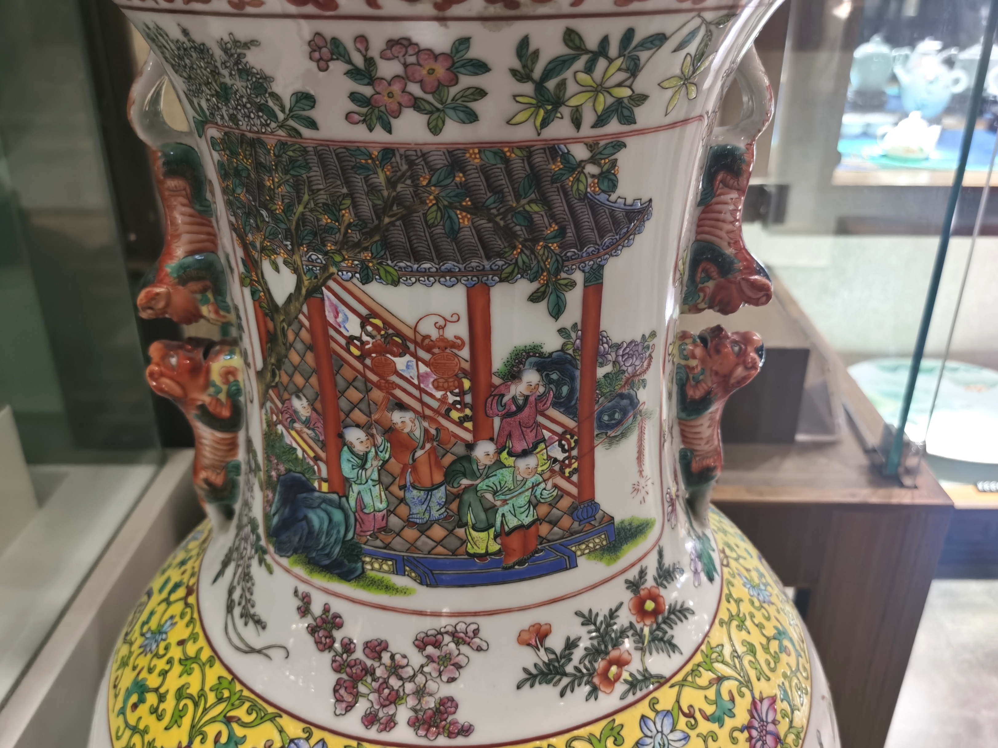 图为京彩瓷瓶身上绘制的百子闹春图。 新华社记者鲁畅 摄