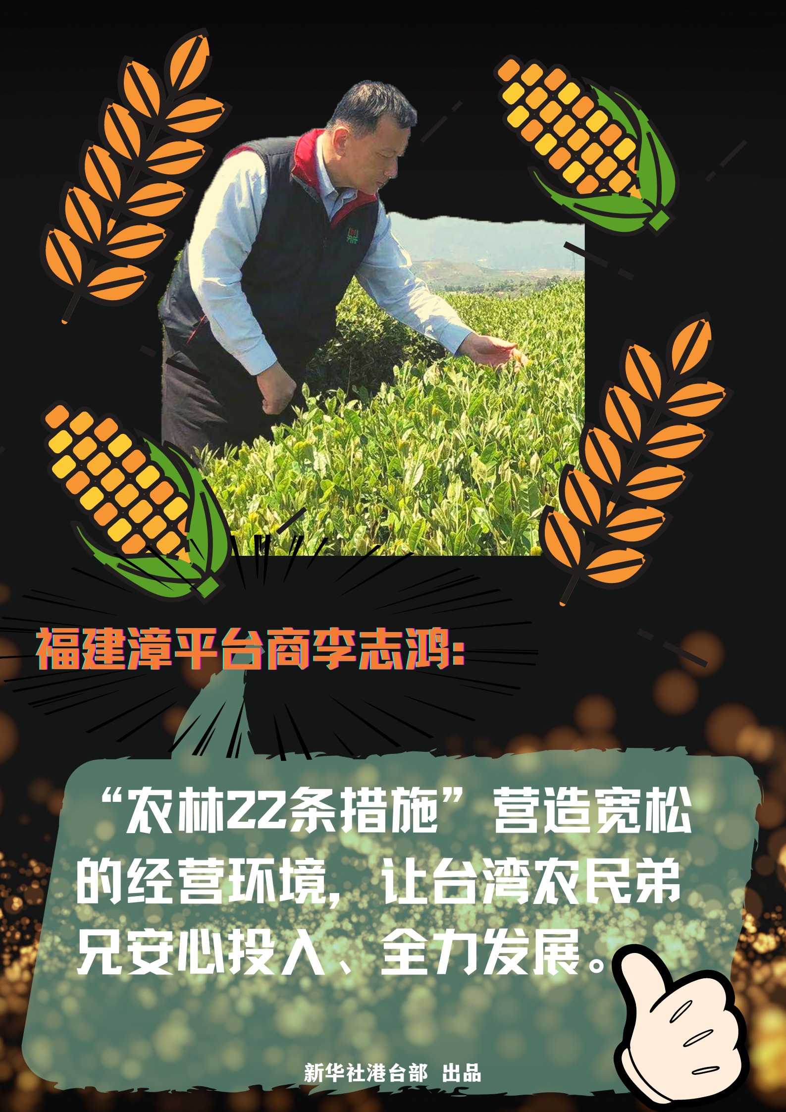李志鸿说,非常感谢大陆秉持“两岸一家亲”理念,出台“农林22条措施”,这可以营造宽松的经营环境,让台湾农民弟兄安心投入、全力发展,并为促进两岸农业交流合作和实施乡村振兴战略带动“三农”发展贡献一份力量。