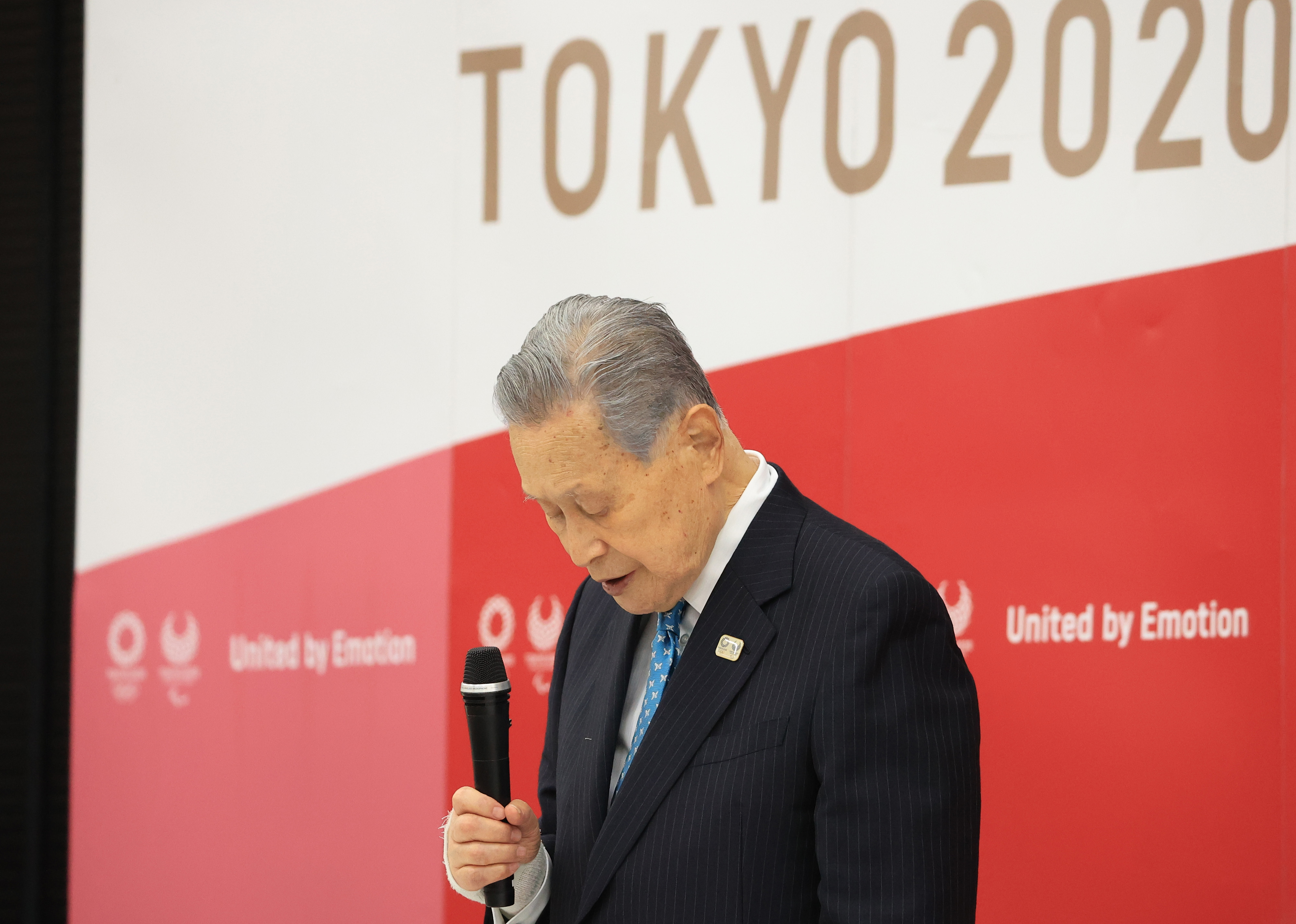 2021年2月12日,森喜朗在东京奥组委召开的会议上正式辞职。新华社发(津野义和摄)