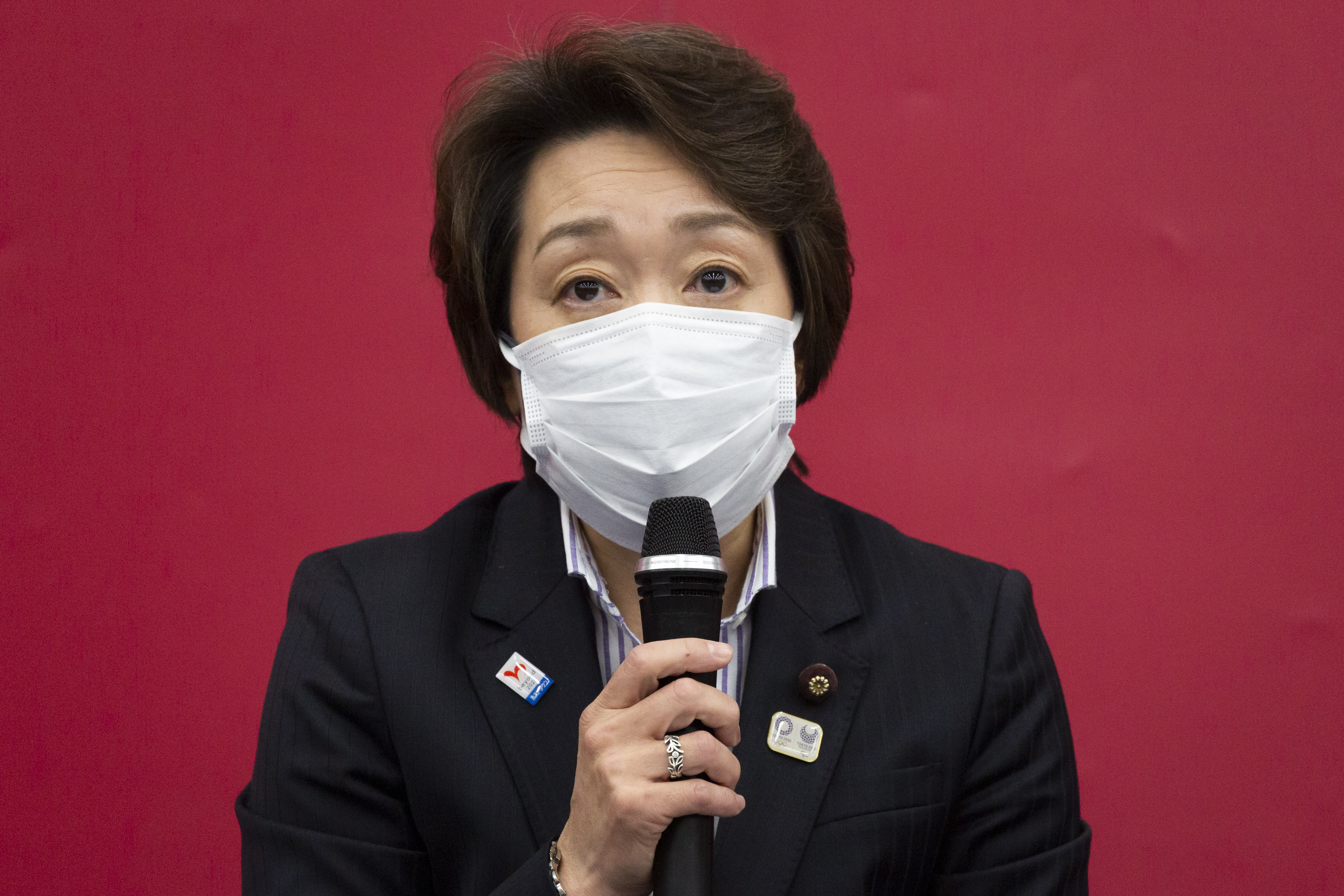 2021年2月18日,东京奥组委主席桥本圣子在被任命为主席后出席记者会。新华社/POOL/山崎裕一