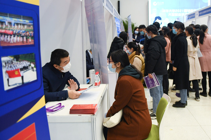 新华社北京3月18日电(记者魏梦佳)近日,清华大学2021届毕业生大型就业洽谈会吸引了众多校内外毕业生,来自全国22个省粉的300余家用人单位,提供8000余个招聘职位供毕业生们选择。