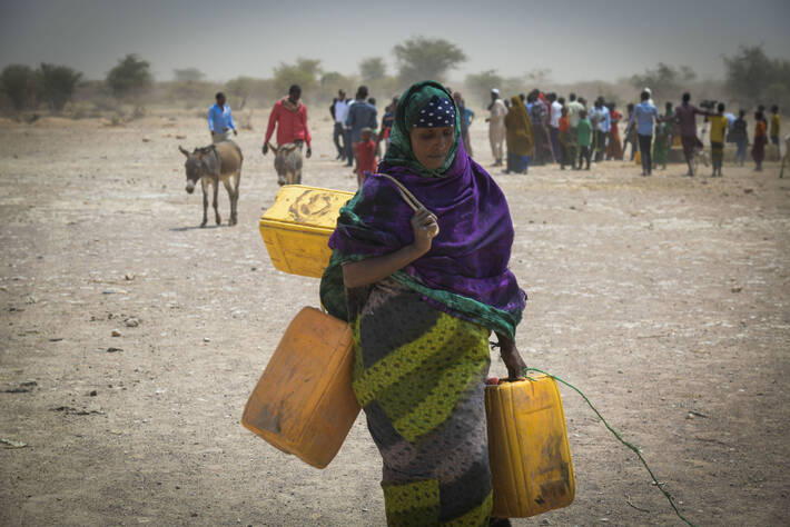 △埃塞俄比亚索马里地区一名妇女带着便携水桶去取水(图片来源:粮农组织官网)
