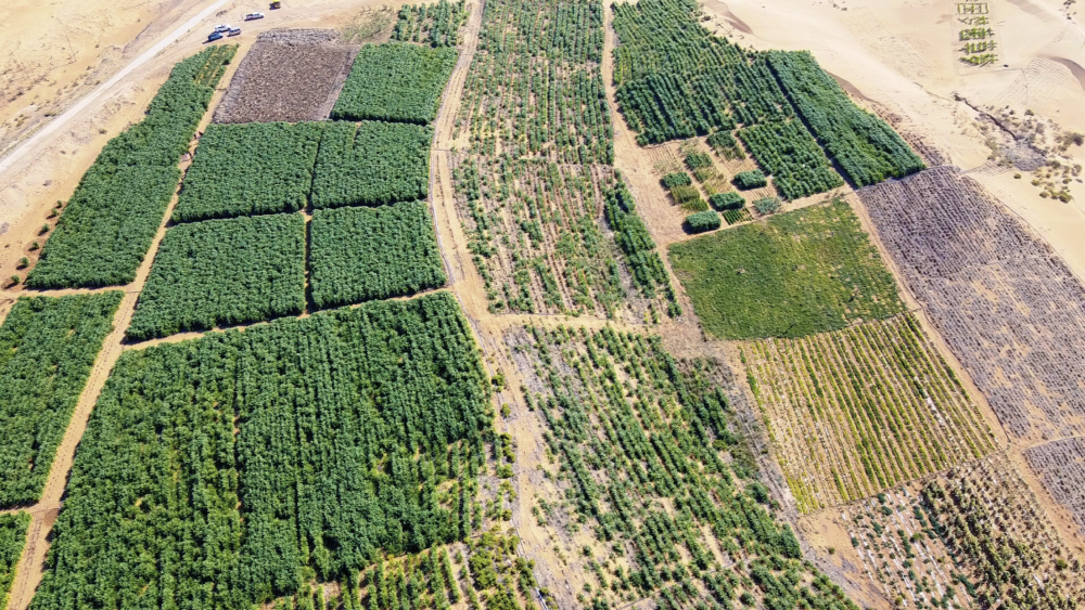 2016年开始,易志坚团队在乌兰布和沙漠进行“沙漠土壤化”种植试验,即在“沙改土”后的沙漠上,尝试种植各种植物。他表示,土壤化沙子保水保肥,节水效果显著。“目前试验基地采用节水灌溉,农作物的灌溉量能低于当地550吨/年的灌溉限额,沙蒿、沙打旺、柠条等沙生植物可以在极低灌溉量甚至不灌溉情况下自然生长。”