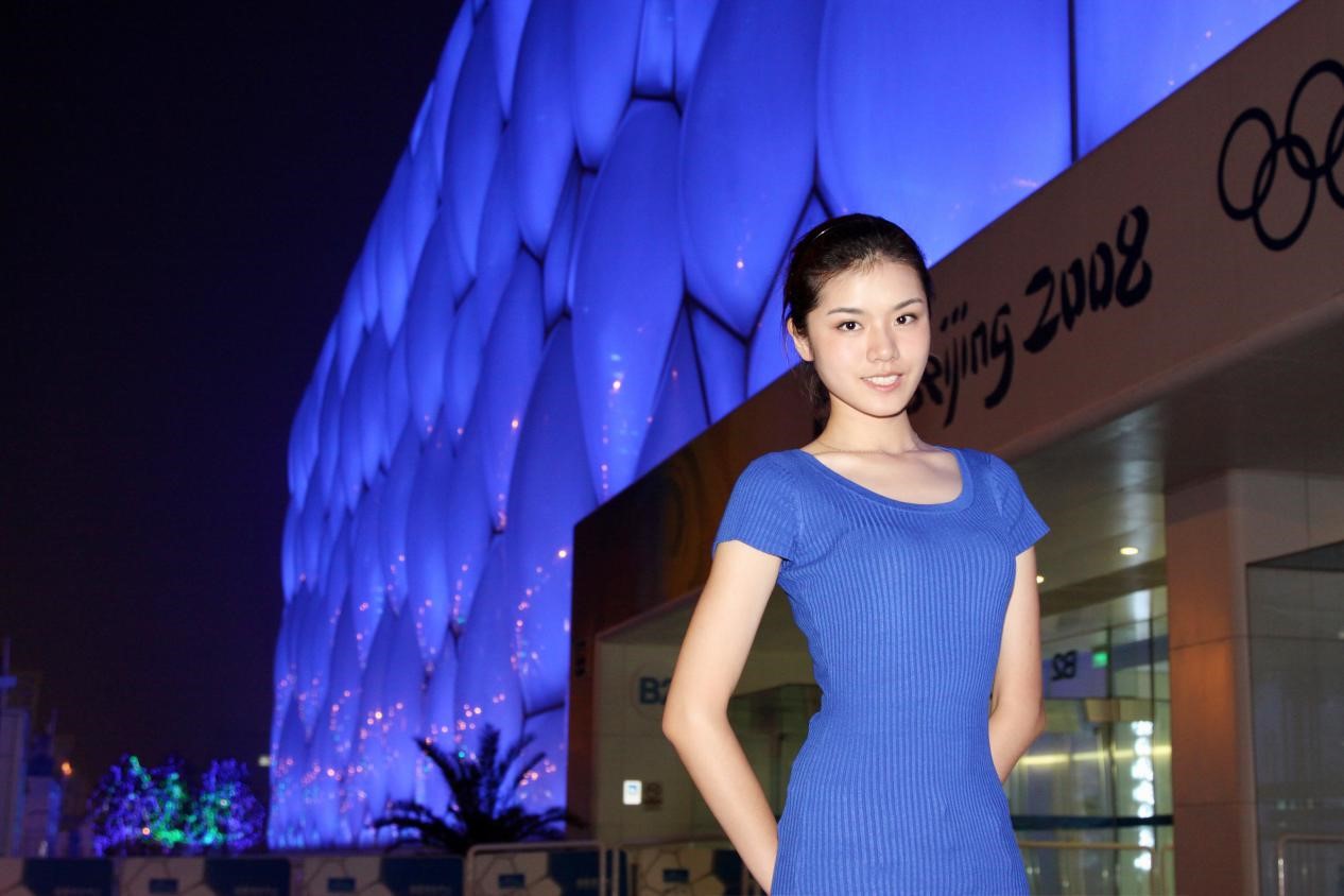△罗璇与“水立方”的合影
