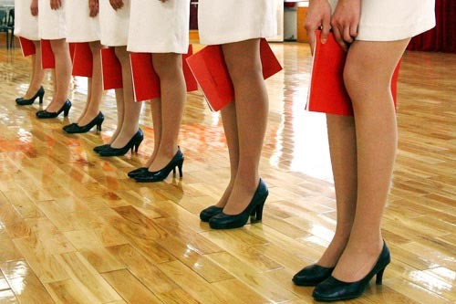没错,为了保持自然的微笑和舒展的体态,训练的过程也是相当严苛。穿着5厘米的高跟鞋,头顶书,嘴里夹着筷子,腿膝盖夹纸,托盘里还放着装满水的矿泉水瓶,重量是一点一点往上加。因为有一场足球颁奖,托盘里会放奖牌还有6束鲜花,整个颁奖过程超过半小时,一直站着手不能抖,那场足球颁奖托盘礼仪有18人组成了一个方阵,步伐一致,特别考验团队的默契程度。