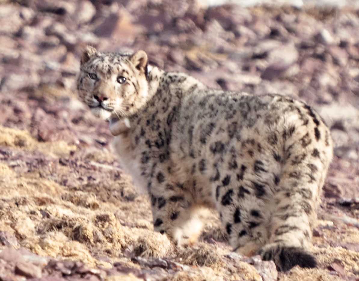 3月16日,雪豹“凌蛰”接受救治放归野外后,缓缓走向山里。 受访者供图