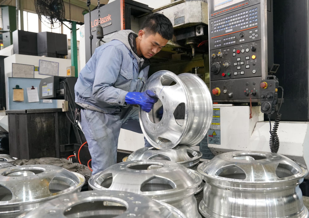 图为河北唐山某汽车配件企业轮毂生产车间 新华社记者杨世尧摄