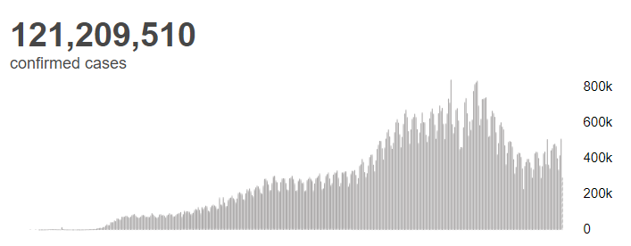 世卫组织:全球新冠肺炎确诊病例超过1.212亿例