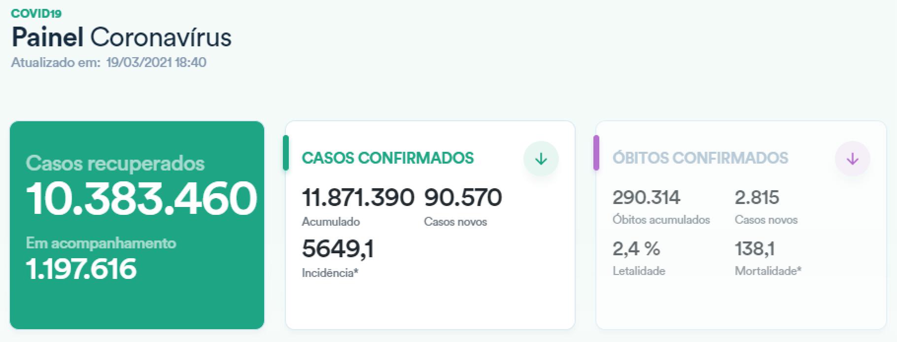 截至当地时间3月19日,据巴西卫生部发布的数据,巴西新增新冠肺炎确诊病例90570例,累计确诊11871390例;新增死亡病例2815例,累计死亡290314例;累计治愈10383460例。从统计数据看,这也是继本月17日以来,第二次单日新增确诊病例超9万例。