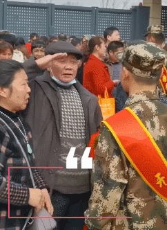 爷爷送孙子入伍互敬军礼,网友:一人参军,全家光荣!