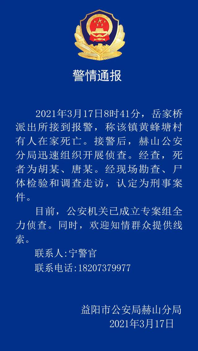 ·益阳59岁祖母和7岁孙子家中遇害,家属称前门锁着后门打开,警方发通报征集线索。