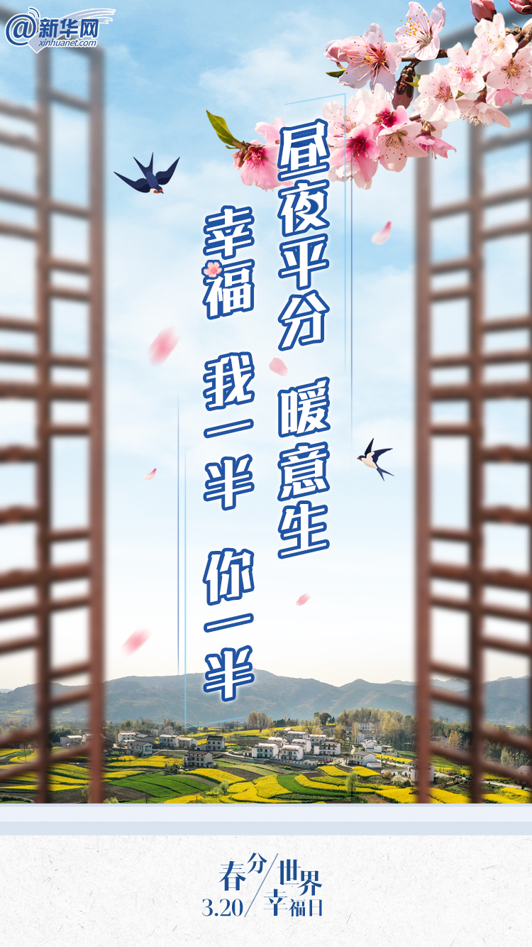 今天是春分,又是国际幸福日。昼夜平分,幸福你一半,我一半。情意同享,寒气退,暖意生。幸福的人儿,#一起出门看春天#吧,看春之山河,看大美中国!
