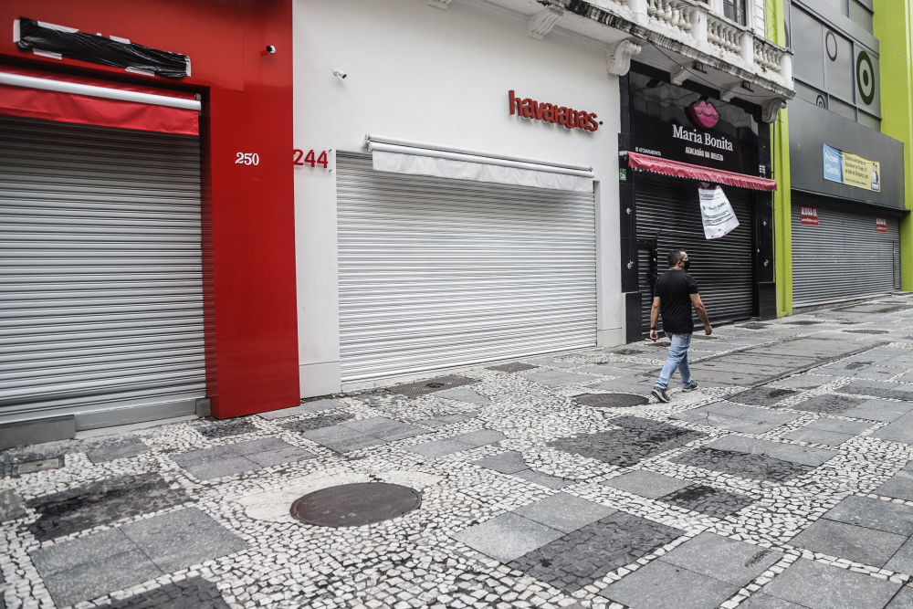 3月18日,一名男子从巴西圣保罗市关闭的店铺前走过。(新华社发,拉赫尔·帕特拉索摄)