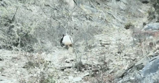3月19日下午,在四川雅安宝兴县硗碛藏族乡夹金山村,村民一行十余人在夹金山半山遇到一只野生大熊猫,这只大熊猫体型壮硕,停留了五分钟左右。