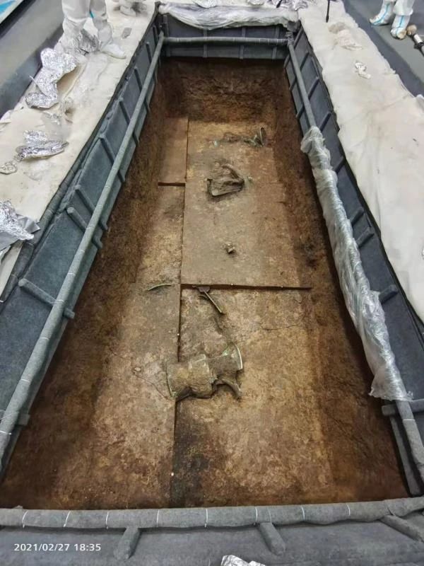 ▲三号坑器物露头。 四川省文物考古研究院供图