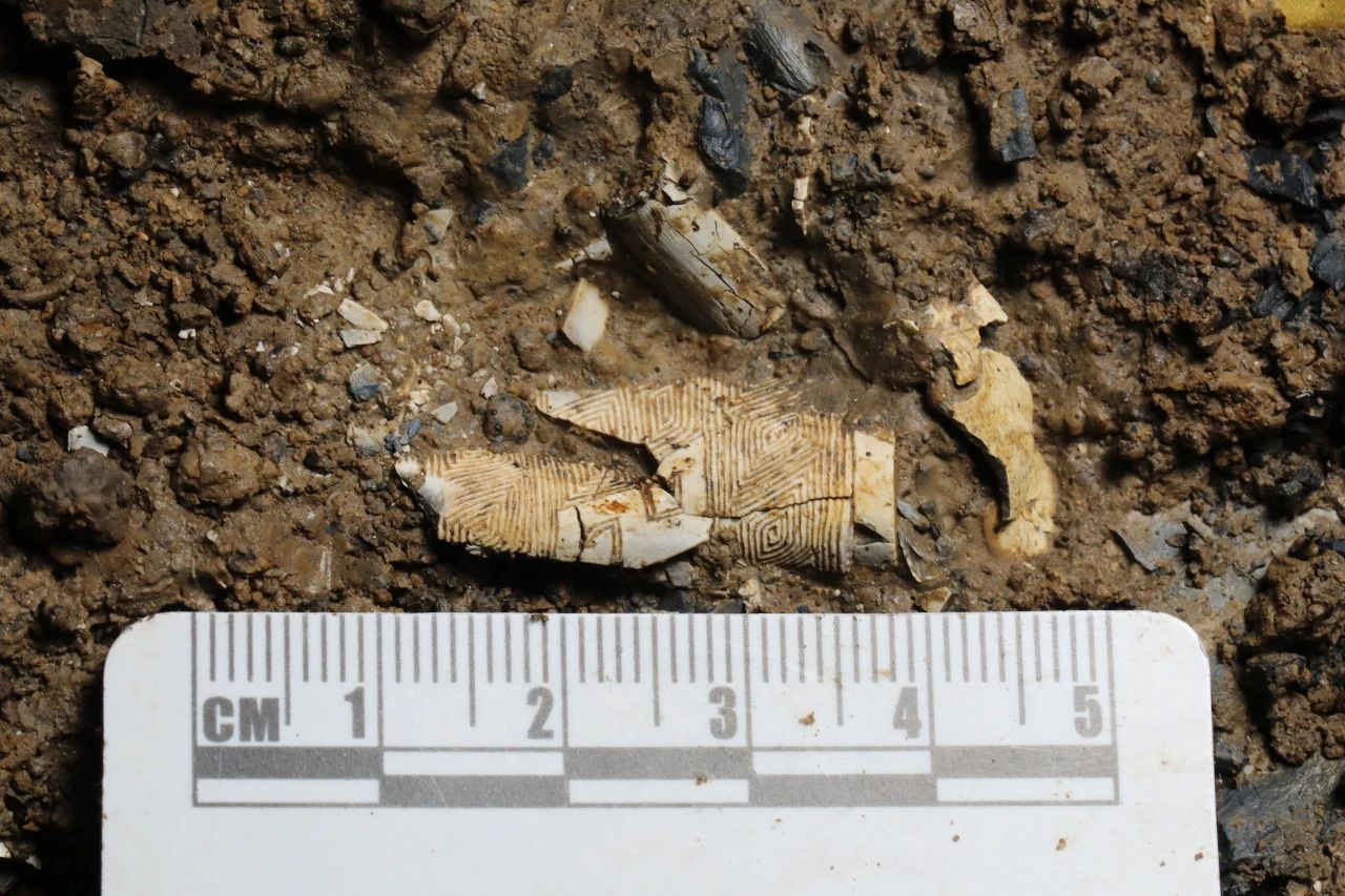▲五号坑象牙雕刻残片。 四川省文物考古研究院供图