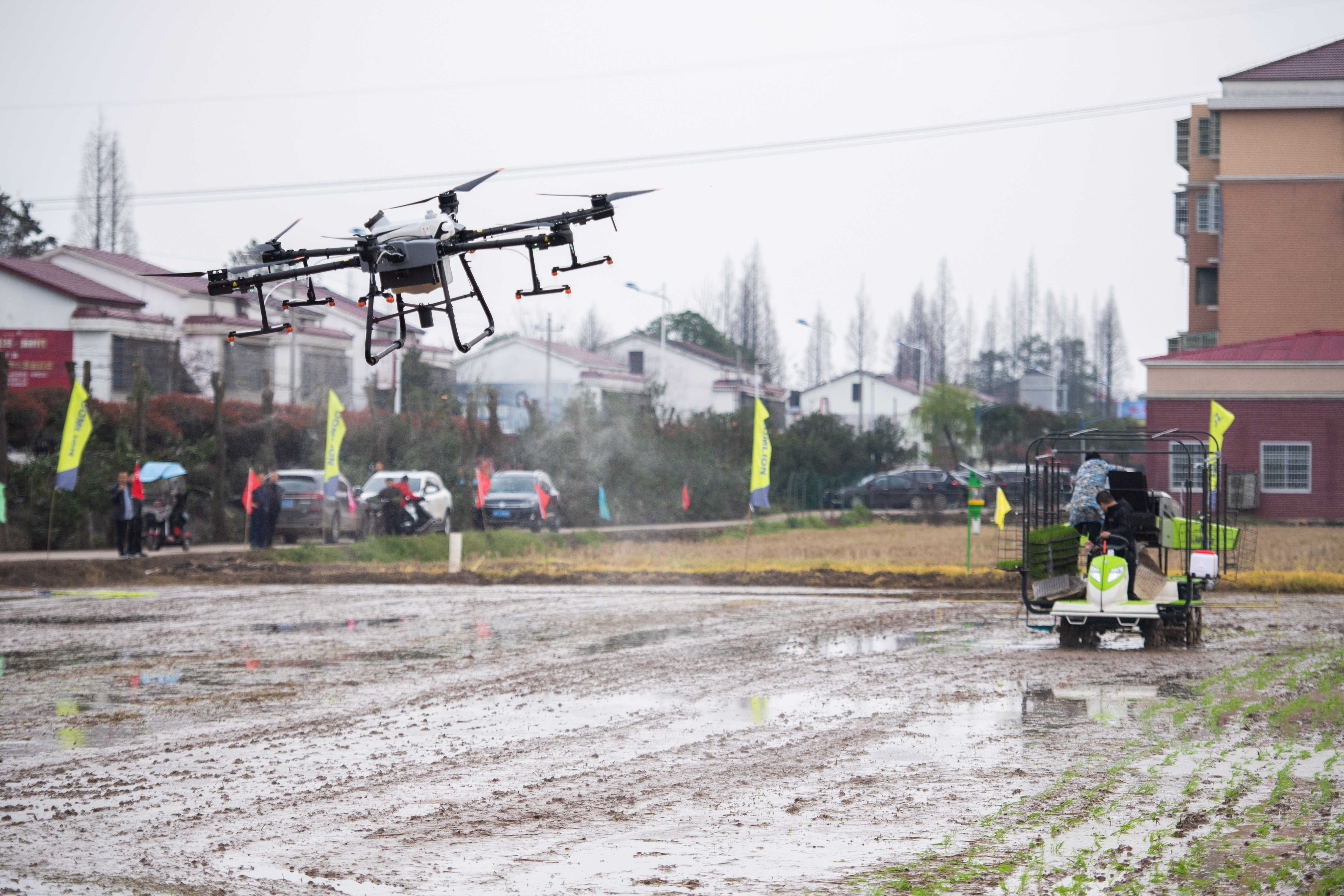 3月2日在湖南省益阳市沅江市草尾镇沅江现代农业技术研发基地拍摄的一台农用无人机。新华社记者 陈思汗 摄