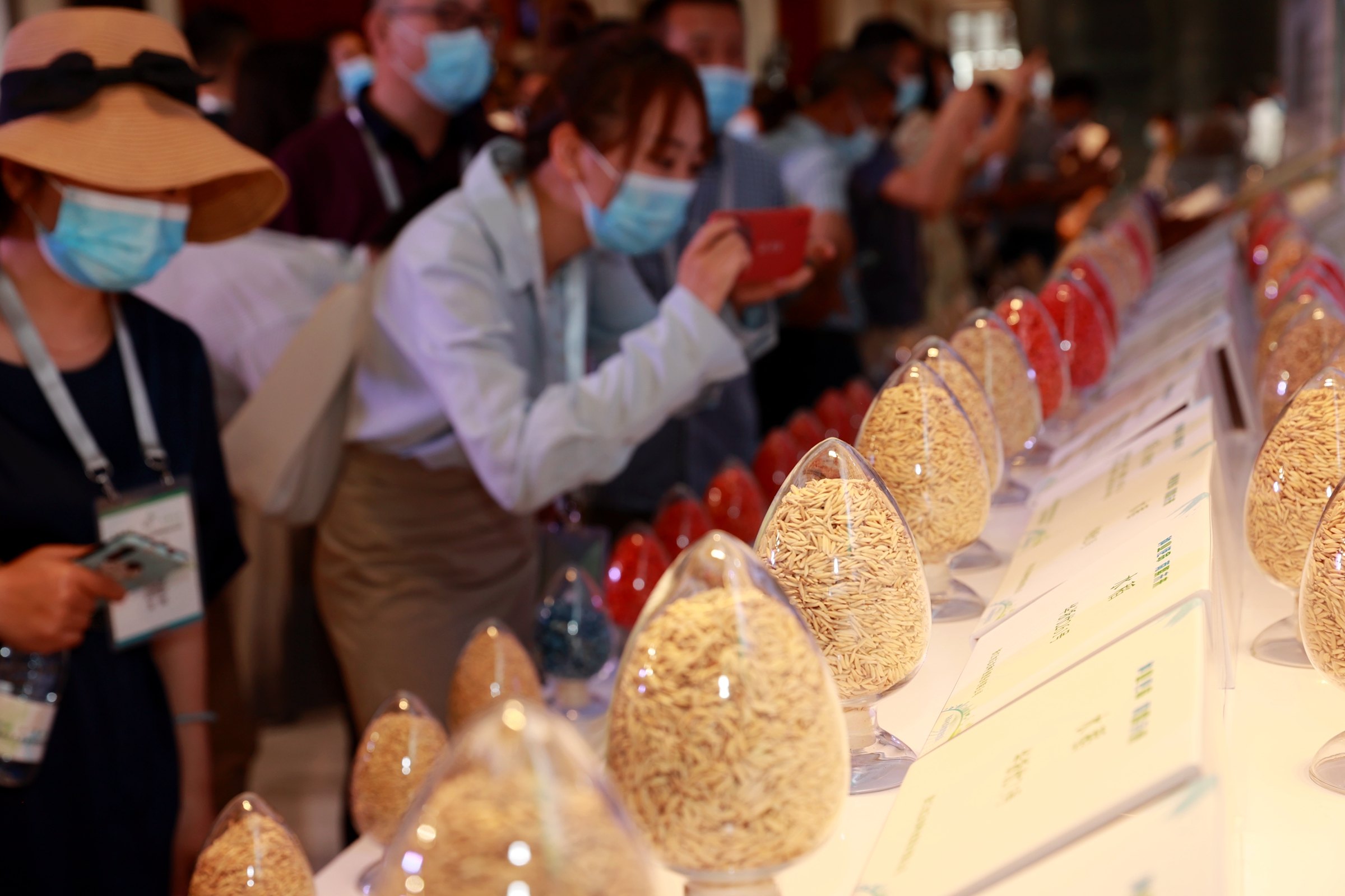 论坛设置展台向参会嘉宾展示农作物新品种种子。新华社发(袁永东摄)