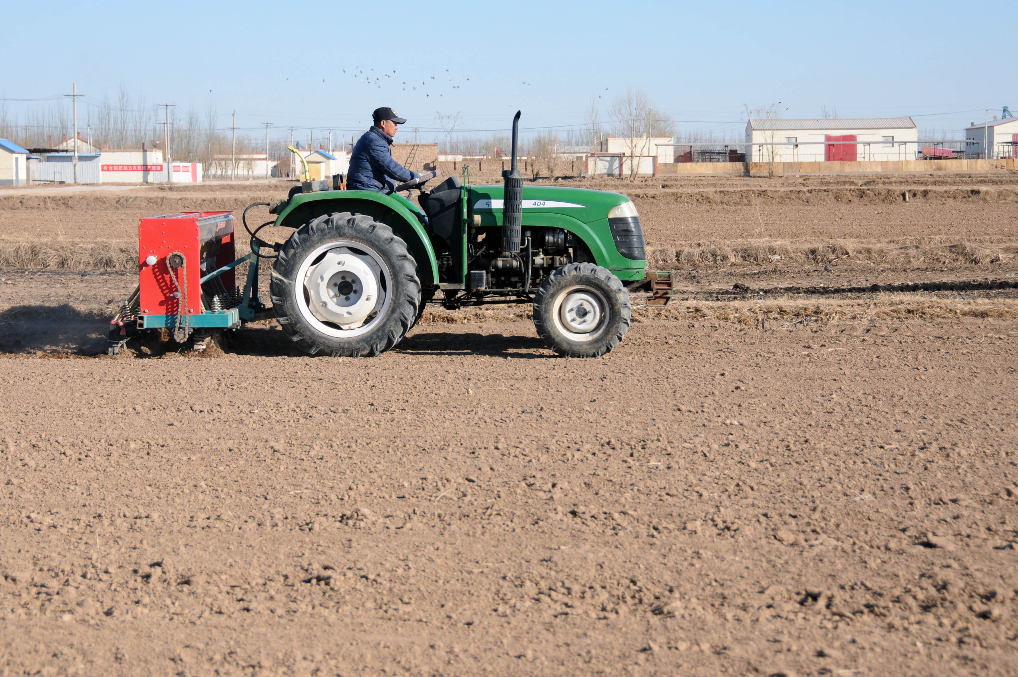 在巴彦淖尔市临河农场平坦的田野上,眼下呈现出一派繁忙的春播景象。农户们驾驶着拖拉机来回穿梭,将麦种和肥料一起播撒进地里,种粮大户王如来说:“今年政府出台了更大力度的小麦种植补贴政策,农民种1亩小麦可以享受补贴300元至450元,补贴标准比去年至少提高150元,我打算种植小麦1000亩。”